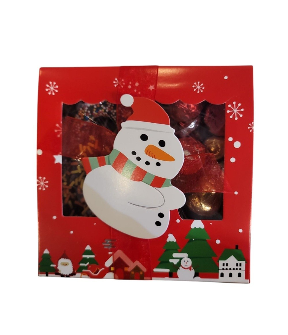 Filled with Lg Assorted Milk Chocolate Pretzels & Foiled Milk Chocolate Christmas Balls.